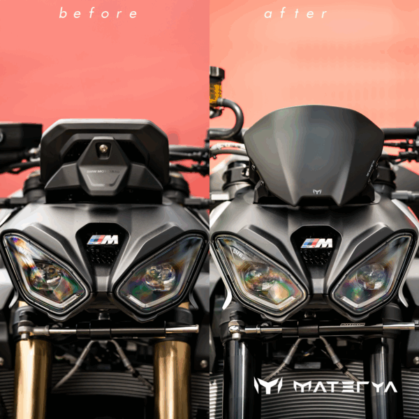 Meticulously crafted for the discerning BMW rider, MATERYA’s Flyscreen brings unparalleled style and function to your bike. With a design honed to deflect the elements and maintain the integrity of your expansive display, this flyscreen’s black matte finish in premium plastic is both a style statement and a guard against dust and road debris.
