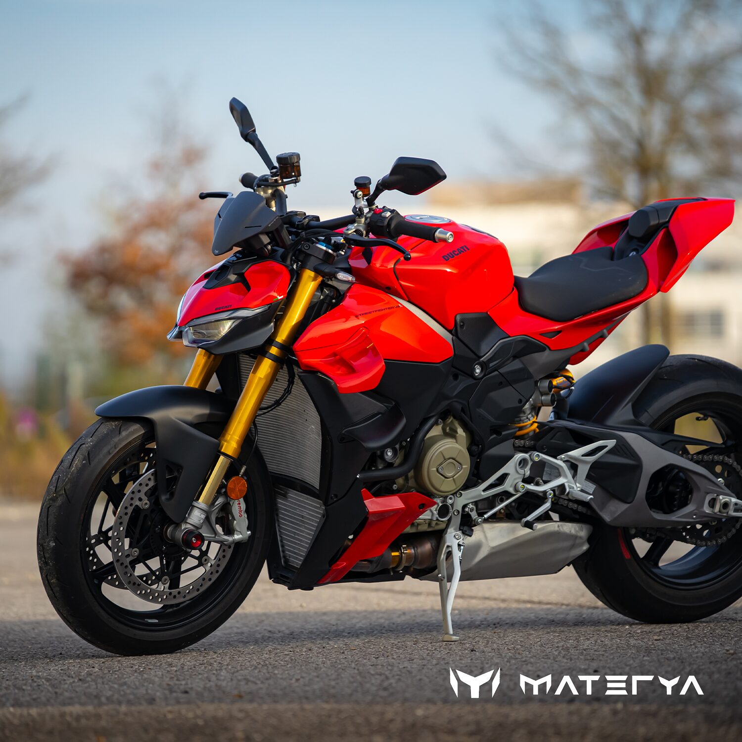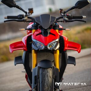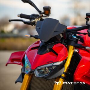 Upgrade your Ducati’s front end with the Materya flyscreen: sharper lines, a more aggressive look, and an instantly premium feel with a Plug&Play solution.