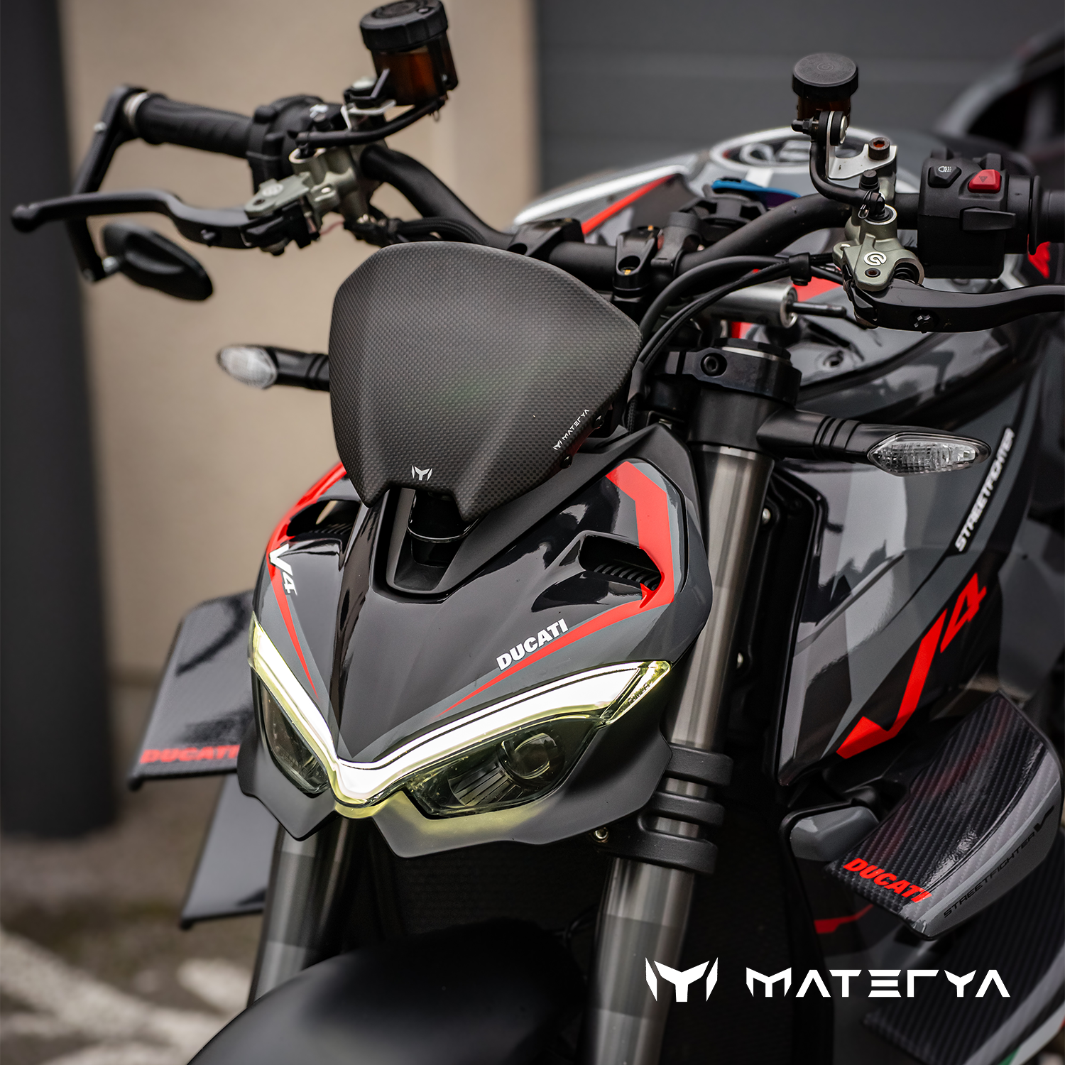 Elevate the aesthetic of your Ducati Streetfighter V4 with the latest Materya Flyscreen.
