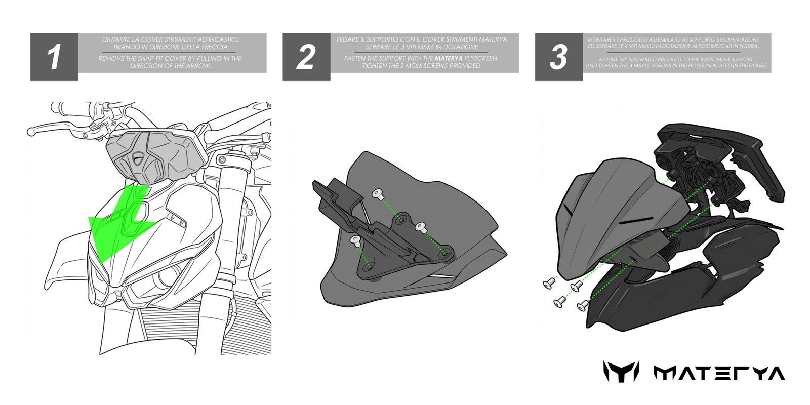 Upgrade your Ducati’s front end with the Materya flyscreen: sharper lines, a more aggressive look, and an instantly premium feel with a Plug&Play solution.