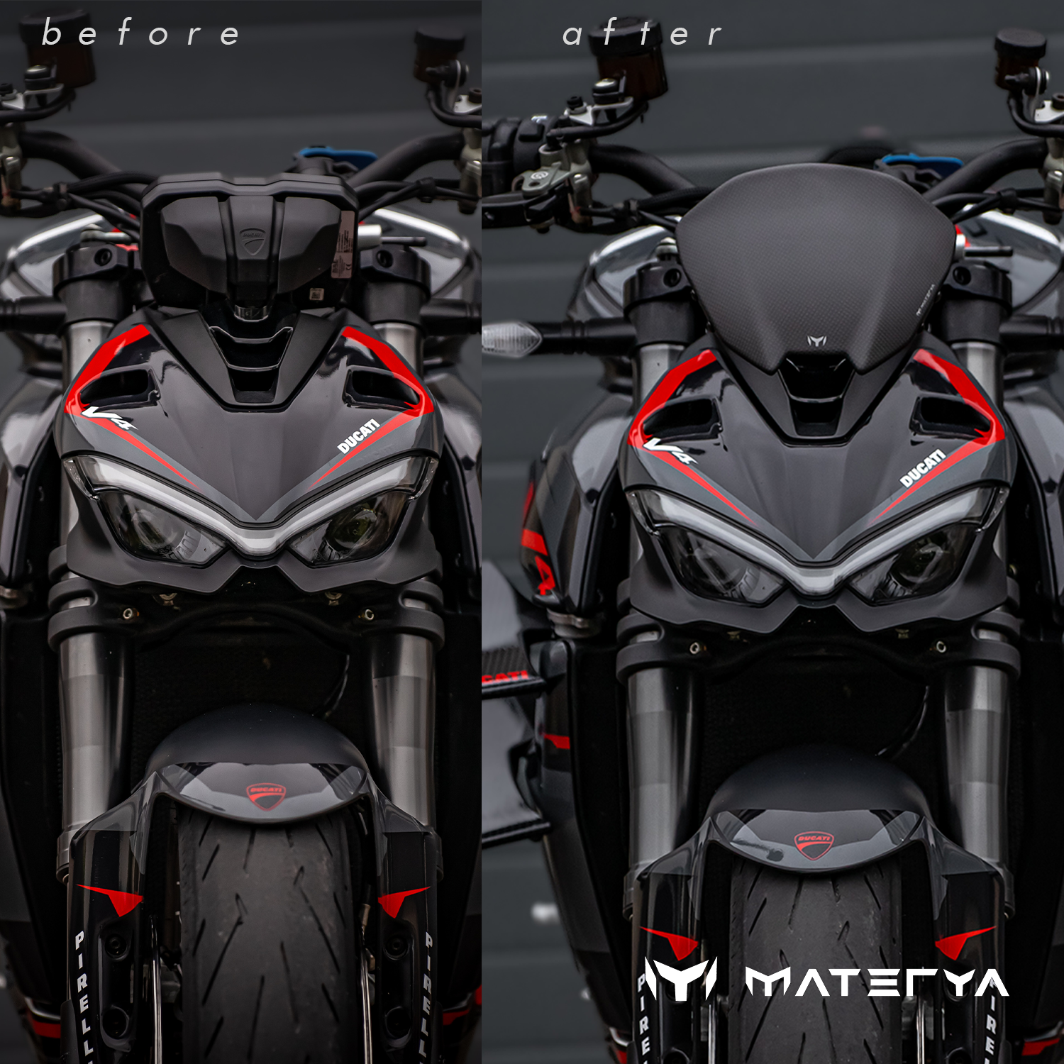 Elevate the aesthetic of your Ducati Streetfighter V4 with the latest Materya Flyscreen.