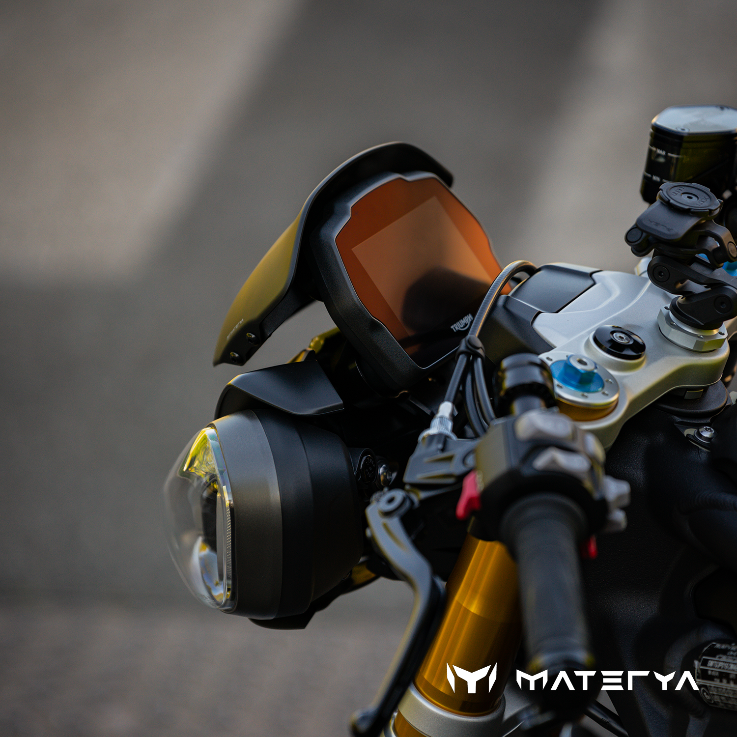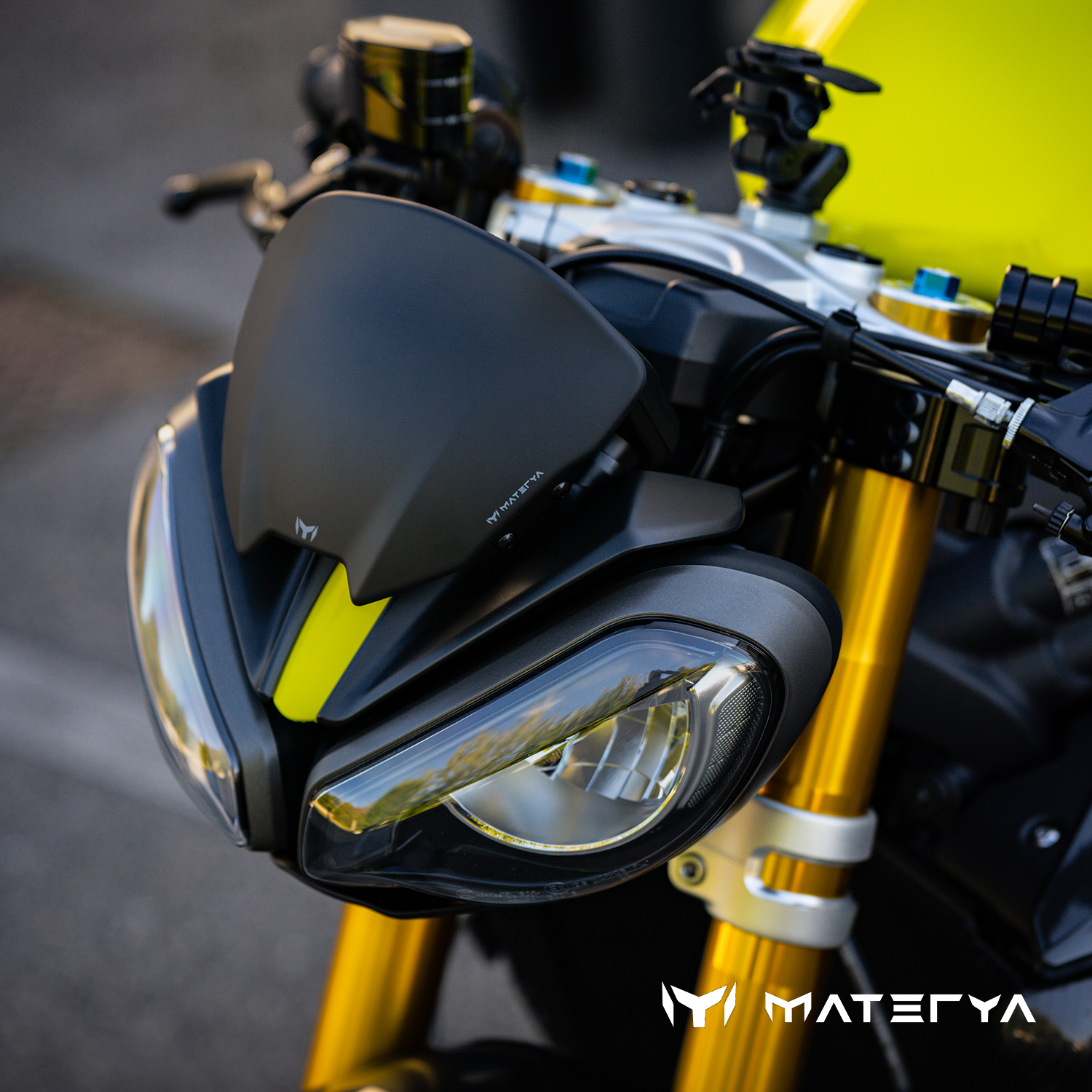 Ride with confidence, knowing your Triumph Speed Triple 1200 RS’s large display is shielded by MATERYA’s meticulously designed FlyScreen. Crafted from high-quality black plastic, this screen boasts a sleek matte finish that complements your bike’s aesthetics. It’s not just about looks; this FlyScreen is your first line of defense against road debris and dust.