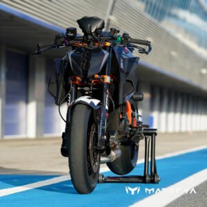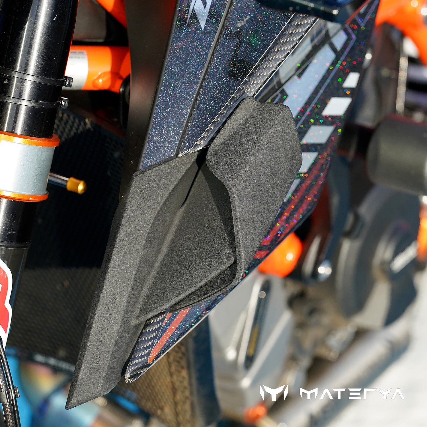 Unveiling a revolutionary Plug&Play design for the serious racer: MATERYA’s Winglets crafted exclusively for KTM Superduke 1290R MY 20. Say goodbye to tedious installations; our interface allows swift mounting without disassembling the side panel. All it takes is the uncomplicated step of unscrewing the lower screw and screwing it back on with the winglets in place.